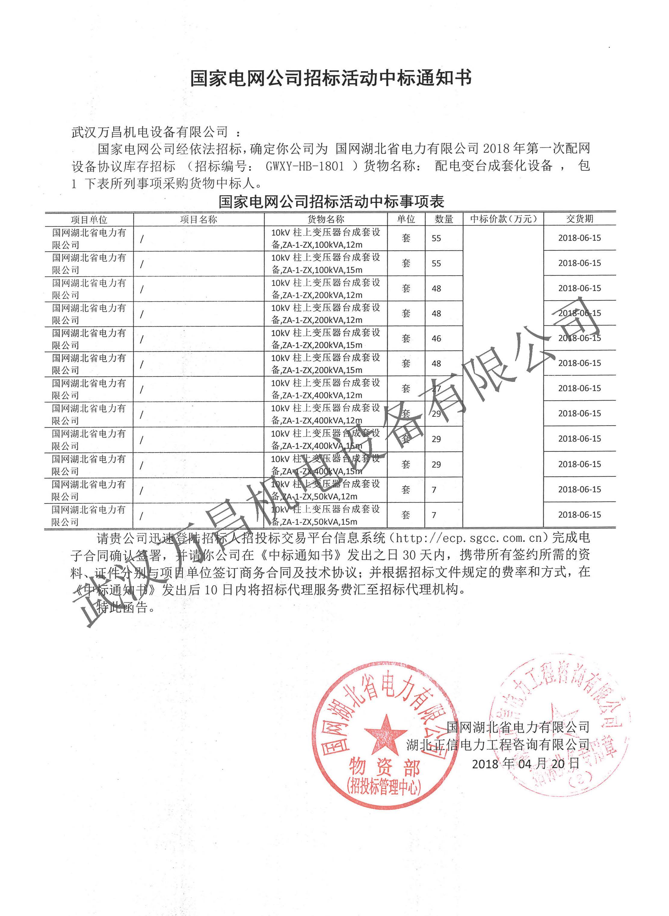 2018年中標(biāo)國網(wǎng)湖北省協(xié)議庫存項(xiàng)目