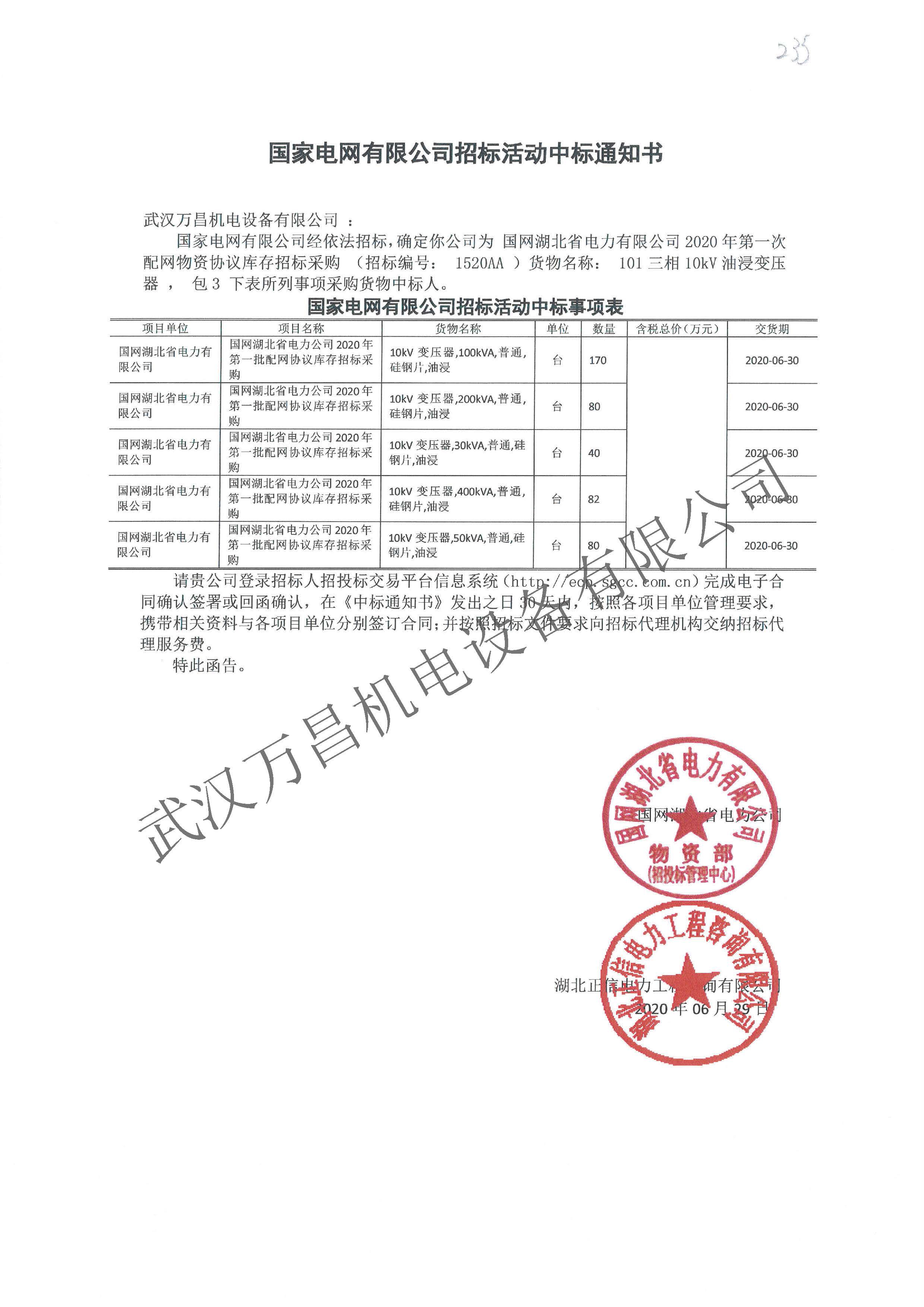 2020年中標國網湖北省協(xié)議庫存項目